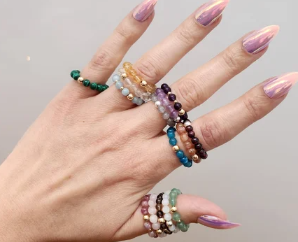 Fantastic selection of gemstone bead rings with health benefits, that improve a wide range of physical and spiritual aspects in life.